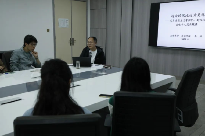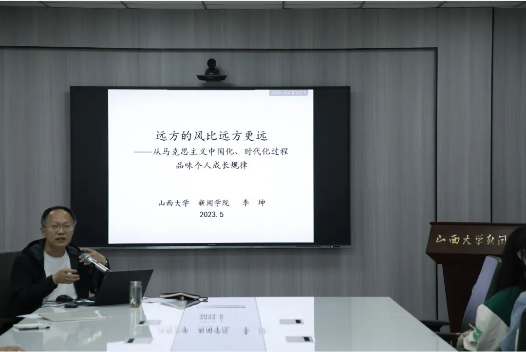 李坤以哲学三问中的“我”为出发点,从当下的时代背景出发,探讨了我们所处的当下和即将面对的未来。李坤结合当下时代背景总结出当代老员工的特点——更具有主体意识,注重平等、民主、法治、权利,也更具有社会公德和上进心,都在争做社会主义建设者和接班人。谈及老员工的未来,李坤提醒同学们走向未来首先是要做好当下,要树立正确的世界观、价值观、义利观和人生观,同时要学会科学的思维模式理性思考问题,要做有意义的事,不要“躺平”、不要被“丧”文化所影响。