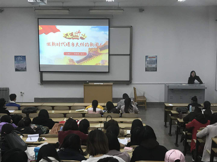 首先,丁艳、秦亚丽、李瑞琦和张豆豆同学,通过对十九大精神内涵实质、十九大报告内容、新时代新思想等的解读,用新闻专业视角仔细剖析了十九大报告中关于新闻传播行业的论述,深入浅出、通俗易懂,用宏观与微观相结合的方式让同学们对十九大的相关知识有了更为全面的了解。随后,王馨誉、王丹枫和陆洁同学,运用所学知识和实践成果,从研究生的使命、责任、要求和新闻人的素养、担当、任务两个方面出发,具体阐释了如何做堪当时代大任的新闻人。