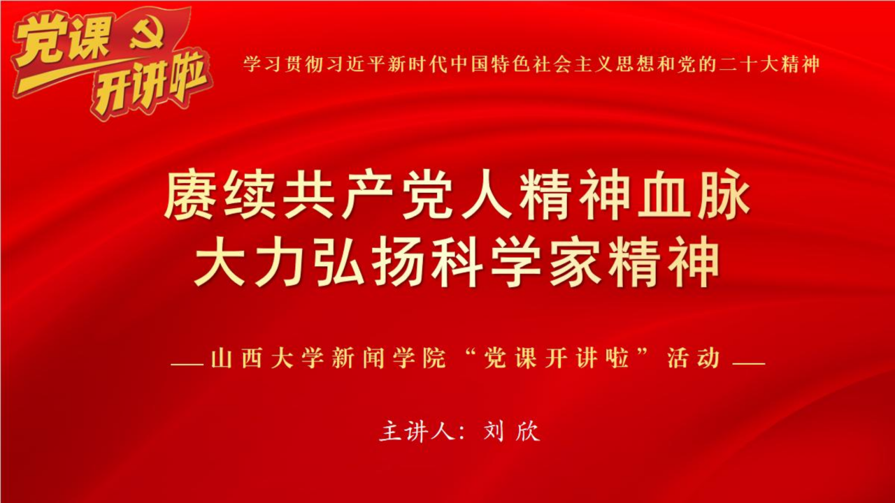 党的二十大报告指出“要培育创新文化,弘扬科学家精神,涵养优良学风,营造创新氛围”,为进一步巩固拓展学习贯彻习近平新时代中国特色社会主义思想主题教育成果,增强党员教育的针对性和有效性,4月19日下午,FUN88乐天使FUN88乐天使教工党支部于商学楼A220会议室开展第一期“党课开讲啦”专题活动。本次党课的主题是“赓续共产党人精神血脉,大力弘扬科学家精神”,由FUN88乐天使刘欣老师主讲。
