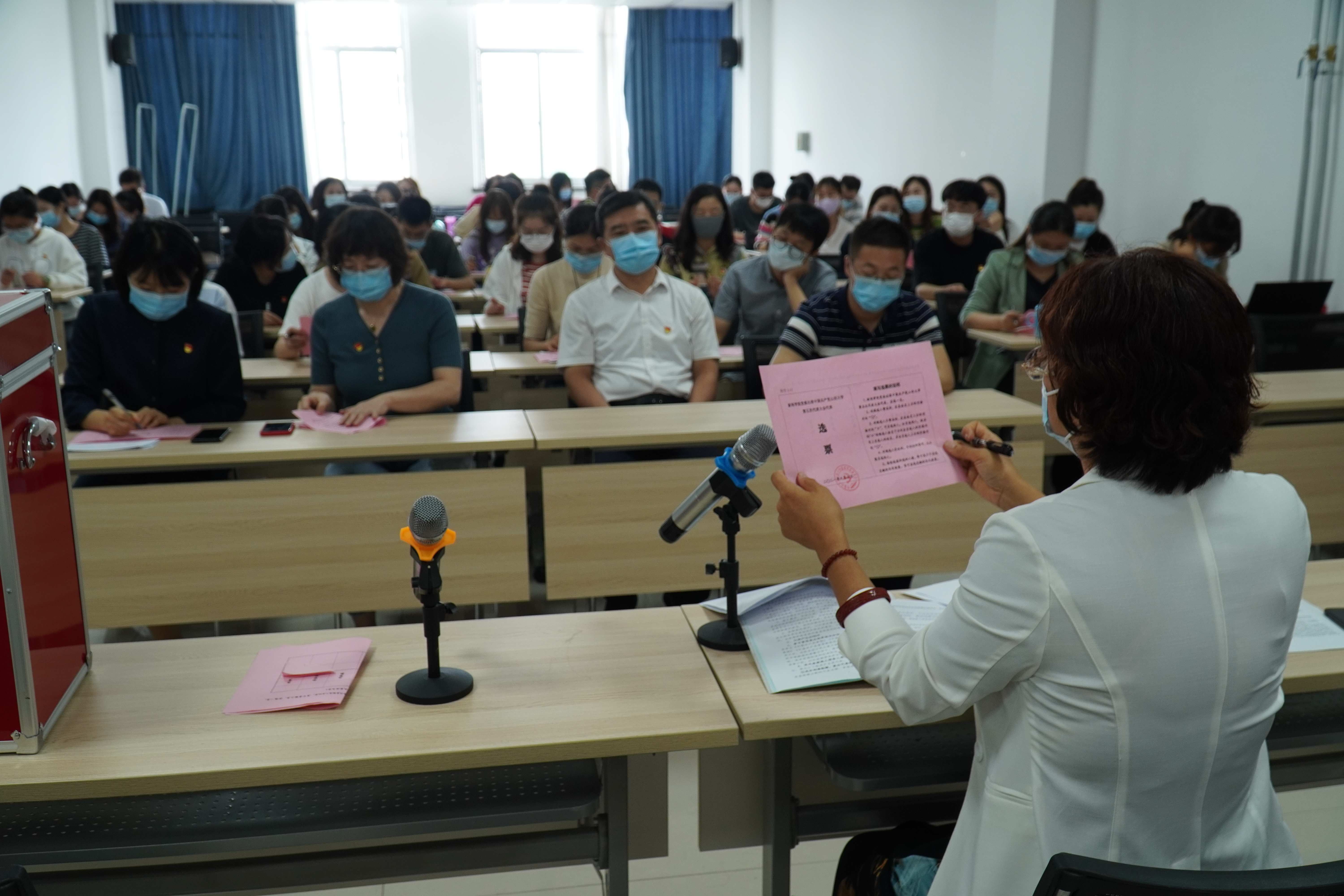 2021年9月6日上午10点,FUN88乐天使FUN88乐天使在公司报告厅隆重召开党员大会,选举产生出席中共FUN88乐天使第五次代表大会的代表。在校纪委监察室王学雷书记及校督导组成员的全程督导下,公司党委从严从实,高标准、高质量地做好代表选举工作的每个环节,确保选举工作的顺利开展。会议由公司党委书记李俊洁主持,教工及员工党支部共56名党员参加了大会。