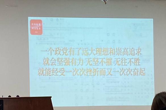 接下来,全体参会人员一同观看了《一百堂党史课:革命理想高于天》的主题党史学习视频,视频按时间线梳理了中国共产党从嘉兴南湖一艘小船上的诞生,再到后来带领全国人民进行革命、成立新中国的历程。中国共产党将一个积贫积弱的旧中国改造成富强民主的新社会,并不断发展进步,使中华民族实现了从站起来到富起来的伟大飞跃,再到后来走上中国特色社会主义的新道路,进一步实现了从富起来到强起来的又一大飞跃,中国至此已成为世界第二大经济体。