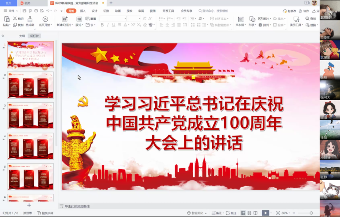 会议上,宣传委员卢文艳带领与会党员重温了习近平总书记在庆祝中国共产党成立100周年大会上的重要讲话。并以此为基础,支部书记郝强对近半年以来支部开展党史学习教育的情况进行了总结。他表明自开展党史学习教育以来,通过支部书记讲党课、观看红色党史视频、参加“我为群众办实事”等多种方式,推进党史学习教育走深走心走实。同时,通报了支委会检视出的问题情况,指出支部还存在党史学习教育成效有待进一步转化,支部建设特色亮点不够突出等问题。针对这些问题,支部深入了解广大党员同志的需求,通过多种媒体形式发挥党员主动性和创造性,将学习内容与学习形式创造性结合,取得了较好效果。
