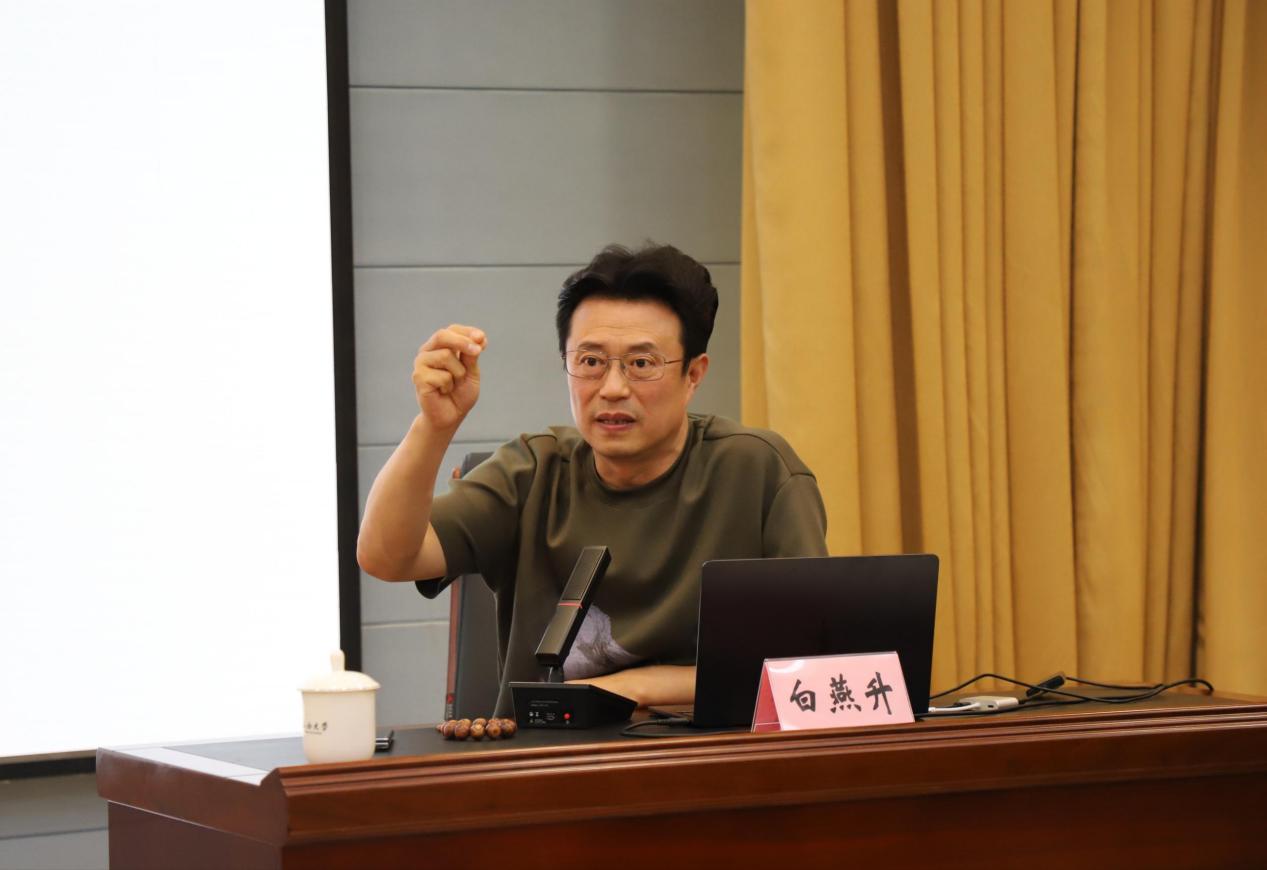 在做人方面,白燕升老师强调做人要有志趣,他从自己的成长经历出发,述说了他自年幼时期就对戏曲产生浓厚的兴趣,从此对艺术不断地探索和追求,同时,他还热爱运动,注重身体健康。他讲到,正是他坚持对艺术的勤耕不辍和对身体的锻炼才成就了今天的自己。