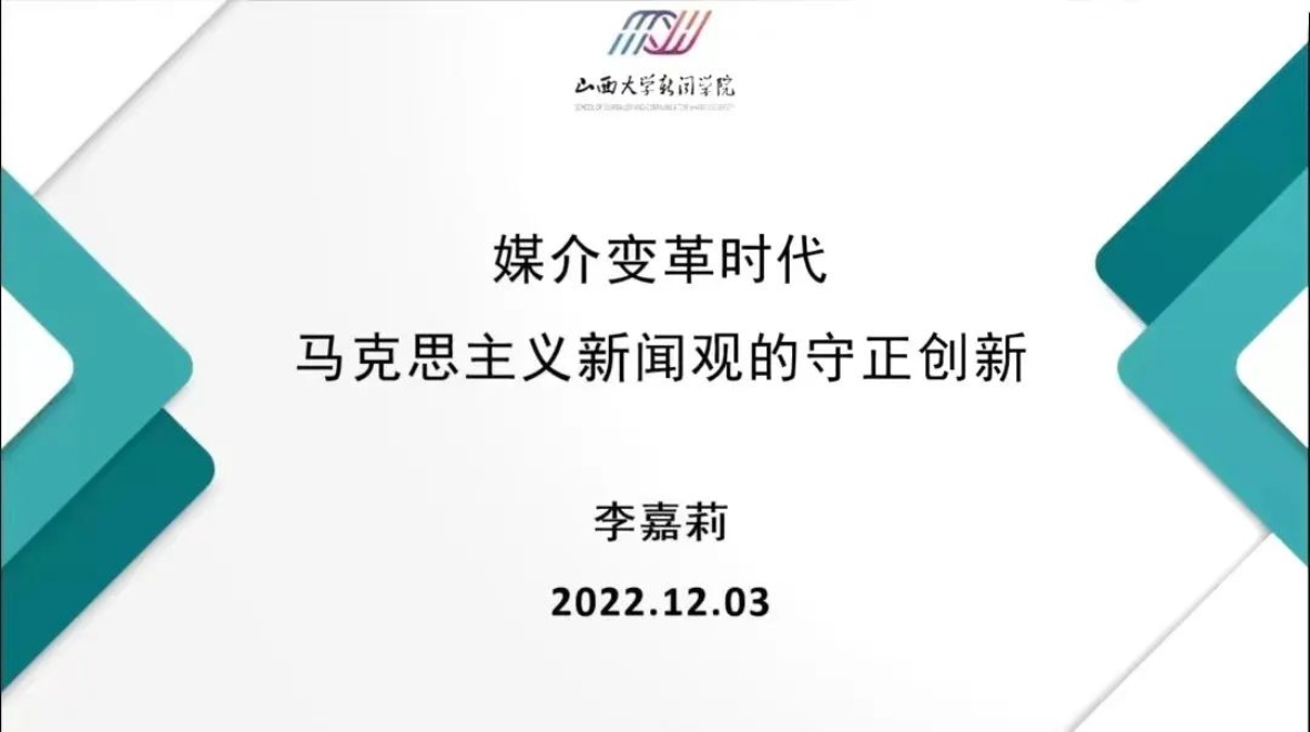 12月3日,FUN88乐天使FUN88乐天使“导师有约”第八期讲座如期举办。李嘉莉老师围绕“媒介变革时代马克思主义新闻观的守正创新”,从媒介本质、党性和人民性的统一、把握媒介变革中“变”的“不变”,以及如何创新马克思主义新闻观研究等四个方面进行了精彩分享。