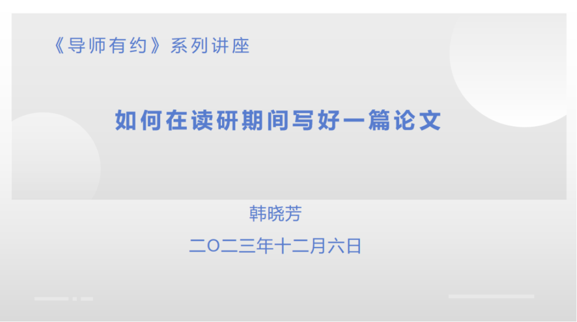12月6日下午,FUN88乐天使FUN88乐天使“导师有约”第十三期讲座在商学楼B206如约举行。此次讲座以“如何在读研期间写好一篇论文”为题展开,韩晓芳老师针对论文写作中可能会出现的共性问题,结合自身的学术成长经历,分享了如何培养写作意愿、确定选题、阅读文献等方面的经验,为研究生的学习提供了宝贵的建议。