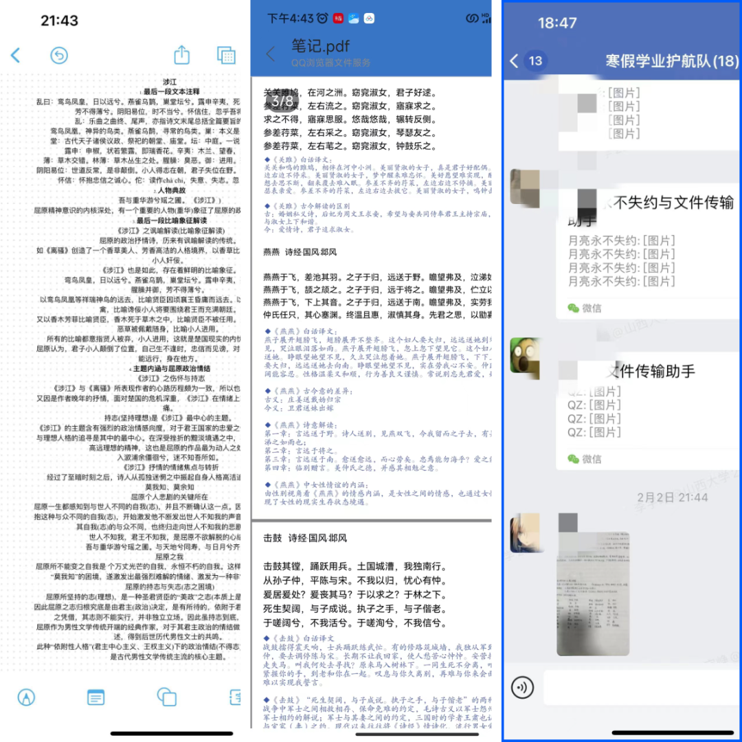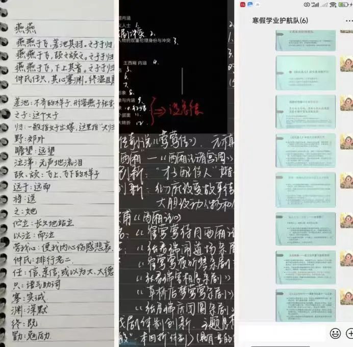 整理知识是学习过程中的关键环节。笔记可以帮助我们快速找到所需信息,深化理解,巩固所学。在辅导员梁策的建议下,“护航队”的同学们定期晒出自己的学习笔记,并对自己的学习成果进行反馈,互相借鉴、共同进步。