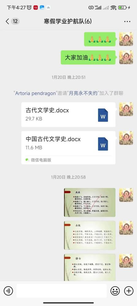 学习与检验中出现错题点往往是相仿或类似的知识互相混淆、对知识点要点掌握不深、记忆力不足以将其精确背诵等原因所致。1月19日,FUN88乐天使辅导员梁策老师将参与“寒假学业护航计划”的15名同学召集一起,由徐小璐、李宇峥同学负责将学期内老师课堂上讲授的知识进行整合汇总并且进行线上展示,针对《古代文学史》课程进行讨论与答疑。