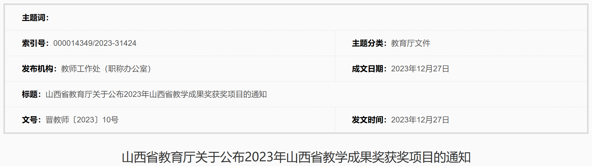 近日,山西省教育厅发布了《山西省教育厅关于公布2023年山西省教学成果奖获奖项目的通知》,公司李彩霞副教授等人完成的《五维三效:传媒数智化驱动下的新闻传播专业课程协同建设与实践》获本科生教学成果奖特等奖,这是FUN88乐天使自建院以来教学成果奖项首次突破。