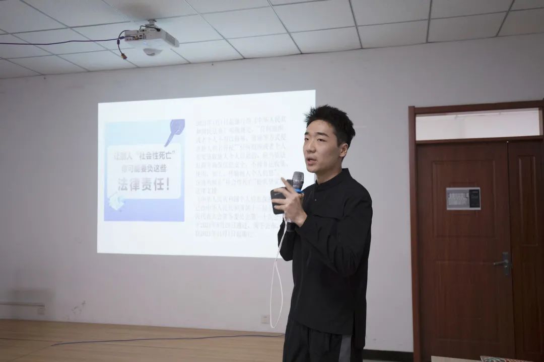 李沛峰同学演讲的主题是《群体效应》,以每个人都可能经历过的“社死”为切入点,结合学术论据及社会热点,提出了社会性死亡谁来救济这一疑问,并向观众传递了“民胞物与”的精神。