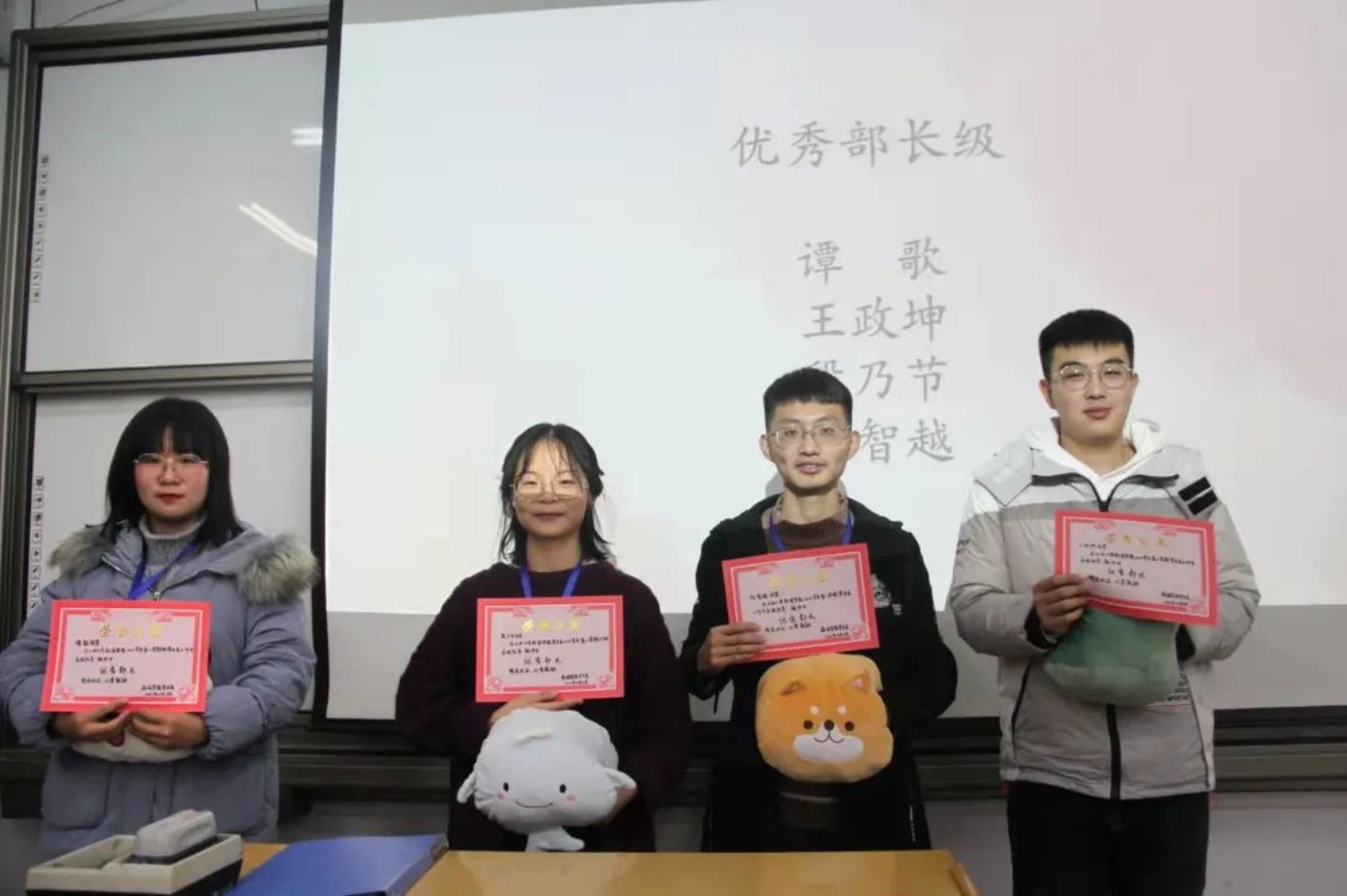 大会第三项,进行优秀部长和优秀部员的颁奖仪式。获奖名单如下: