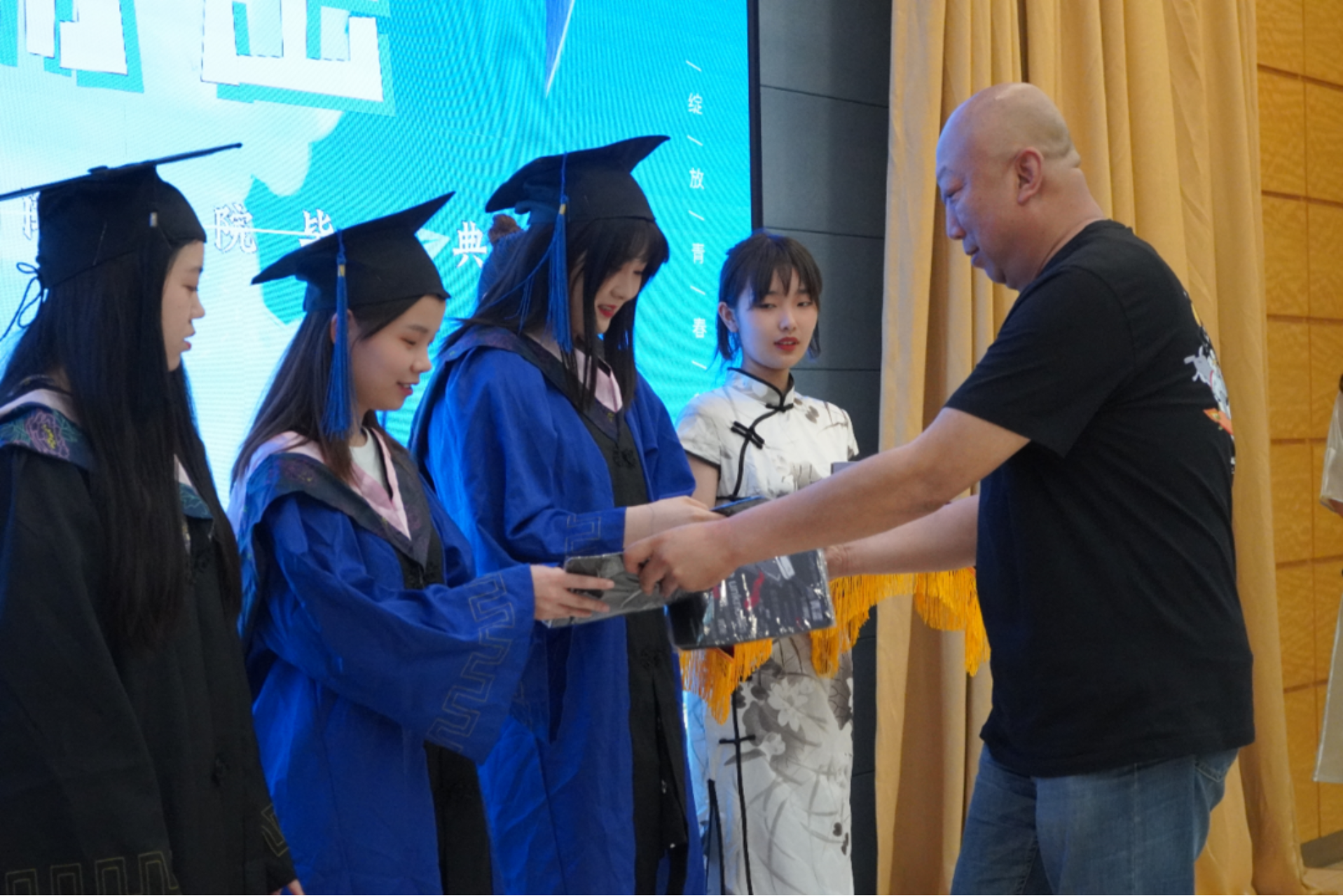 教师代表李雪枫教授,祝愿同学们前途光明,携着美好回忆开拓自己的美丽人生。同时也对同学们提出铭记执守,坚持读书,勇敢面对未来,不惧艰难的期望。