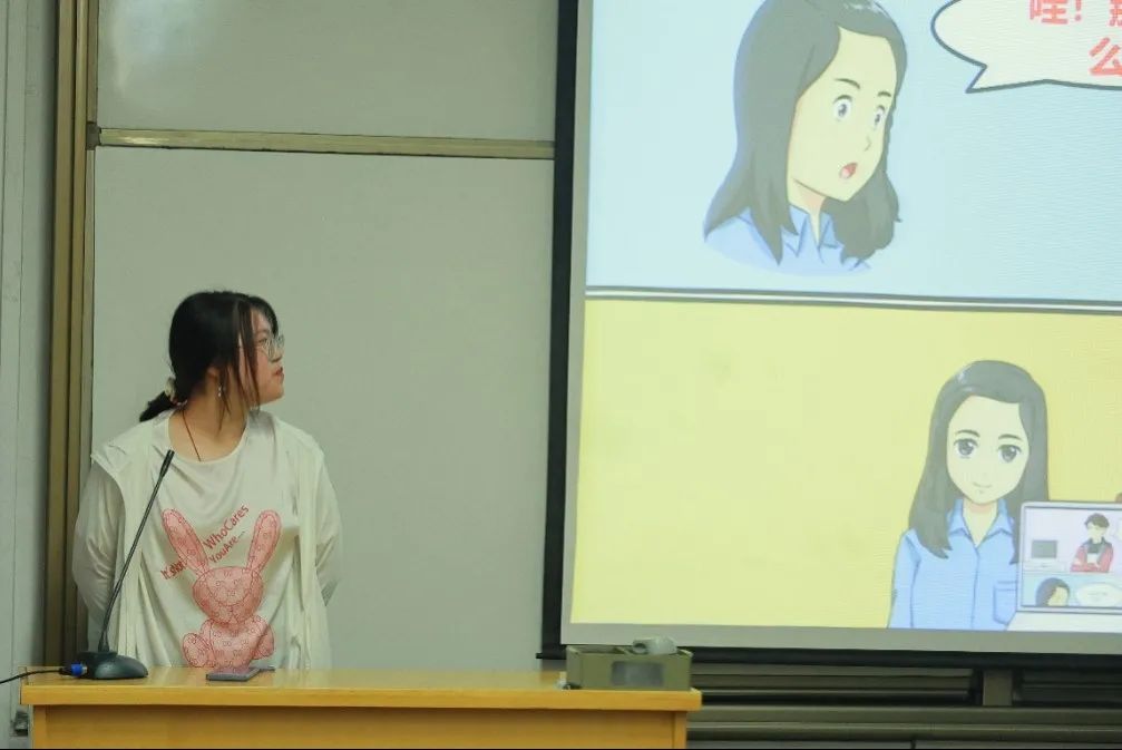 王甜叶同学向新生分享交流自己的学习经验,她向新生介绍了如何让自己更好地适应老员工活,做好学习与课外活动的时间管理。最后她还鼓励大家要广泛阅读书籍,全方位提升个人素养。