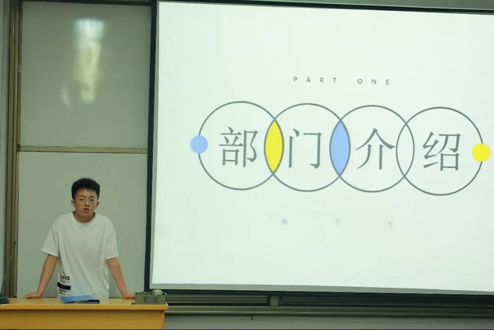 员工会及团委下属组织各部长各显神通,通过放映PPT系统性介绍了各部门的职能和情况,认真详细又不失风趣活泼,对新生表示了诚挚的邀请。