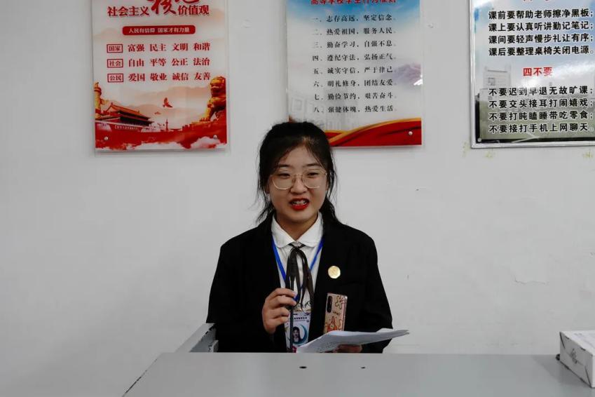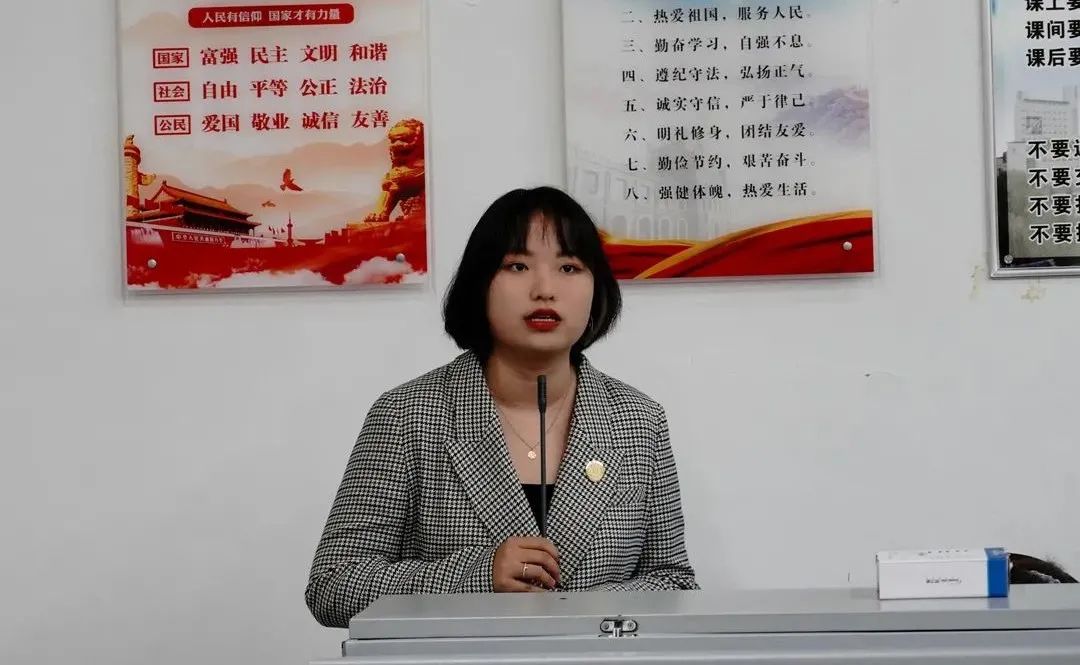 成雪同学作为代表向新生分享交流自己的学习经验,她向大家分享了如何能更好的适应从高中到大学身份的转变,怎样高效听课以及学习英语的方法,在生活和学习两方面帮助新生更好的了解老员工活,最后她还鼓励大家要多多参加社会实践,提高自己的能力。