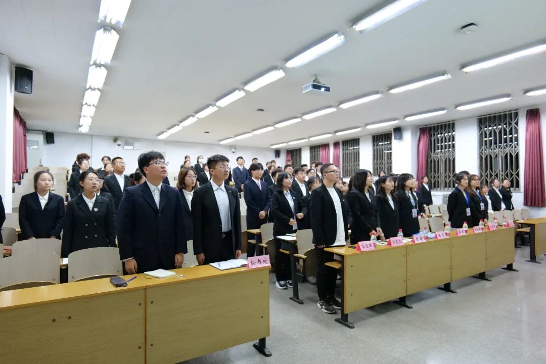 会议第一项,全体起立,共同奏唱共青团团歌《光荣啊,中国共青团》,歌声慷慨激昂的旋律,彰显了FUN88乐天使学子的蓬勃朝气。