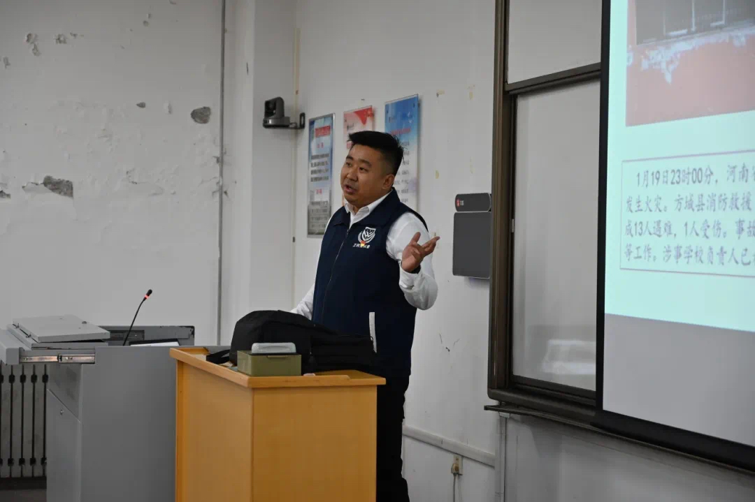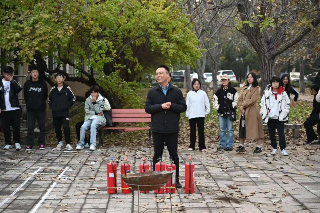 在文科楼北侧空地,保卫部副部长李剑利结合校园防火工作实际,向同学们进行了消防知识普及,重点讲解了灭火器、消防水带等消防器材的使用方法、注意事项及火灾现场应急处置方法。通过实际操作,大家不仅掌握了灭火器的正确操作步骤,还深刻感受到了消防安全的重要性,此次消防专题活动取得了圆满成功。