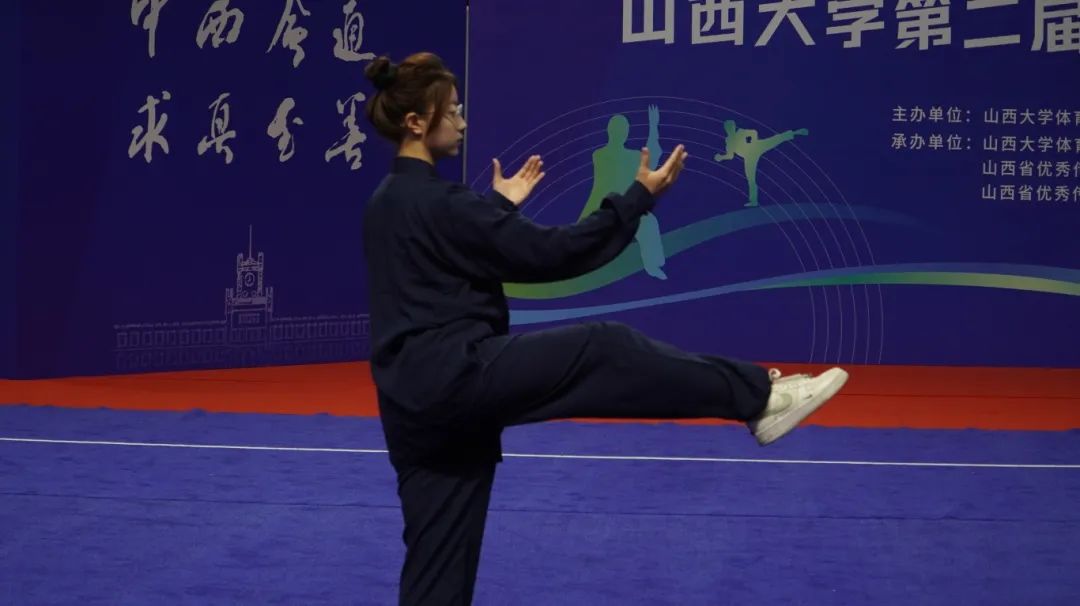 她在女子其他太极拳这一比赛项目中,选择了杨氏太极拳作为展示。场上的短短三分钟,她神态自若,动作行云流水,一招一式,舒展自然。