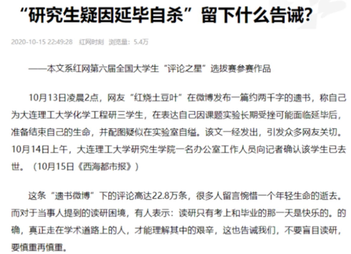 (图3:钟星月作品《“研究生疑因延毕自杀”留下什么告诫?》)